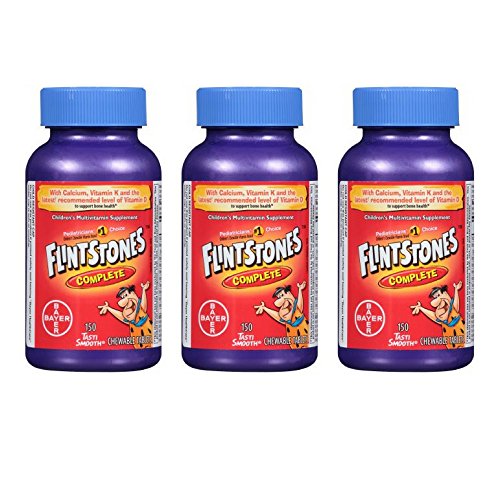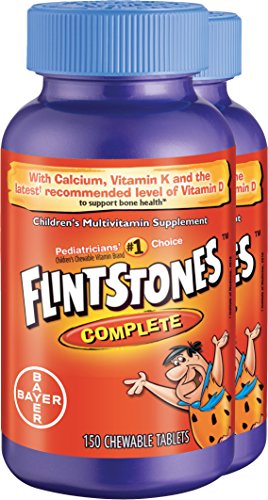 Flintstones Complete Chewable Multivitamins offer a wide range of nutrients in easy-to-chew, fruit-flavored tablets. These daily multivitamins provide vitamins and minerals that growing bodies may need. Flintstones Chewables work to support energy by helping convert food to fuel, while also supporting bone health, immune health, and eye health.* Flintstones Chewable Multivitamins are gluten free and do not contain high fructose corn syrup. Flintstones Multivitamins are Pediatricians’ #1 brand choice for children’s chewable vitamins. These fun chewable vitamins feature eight classic Flintstones characters and four yummy flavors -Cherry, orange, grape, and peach. Directions: Under adult supervision product should be fully chewed or crushed. Children 2 & 3 years of age: Fully chew one-half tablet daily, with food. Adults and children 4 years of age and older: Fully chew one tablet daily, with food. *This statement has not been evaluated by the Food and Drug Administration. This product is not intended to diagnose, treat, cure, or prevent any diseaseFeature