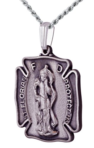 -. Title : 1 1/8in 0.925 Sterling Silver Saint St Florian Firefigthers Pendant Necklace