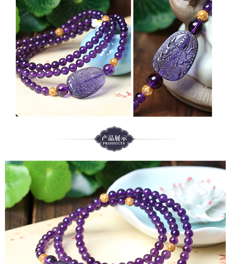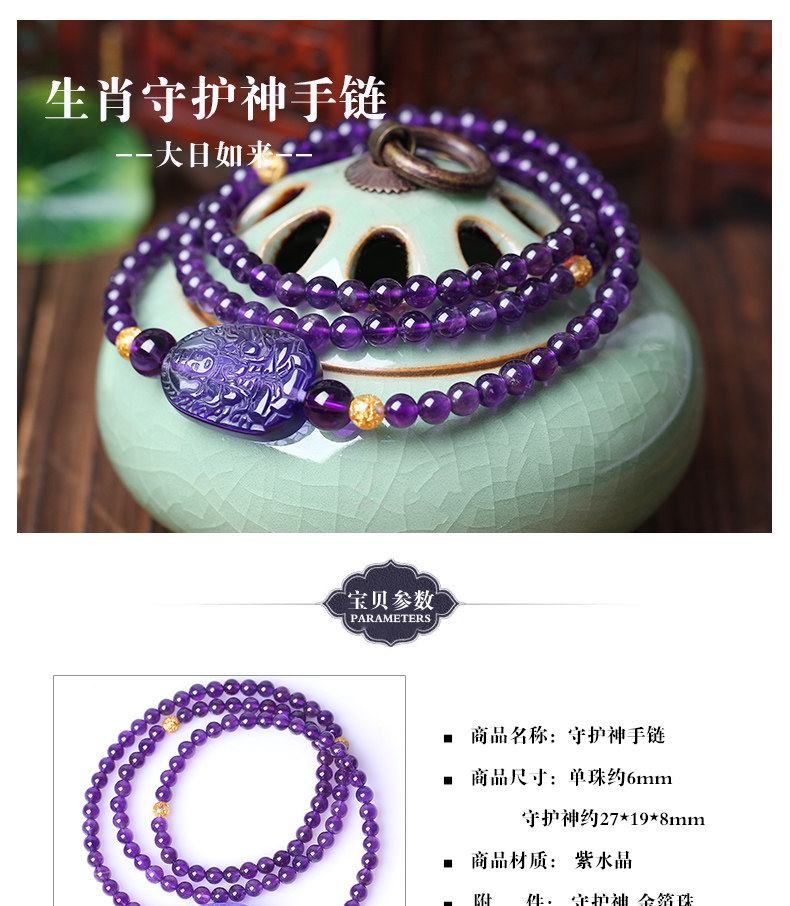 开光属羊正道本心正进佛手链肖羊本命佛紫水晶大日如来手链