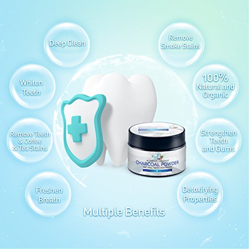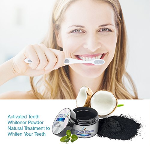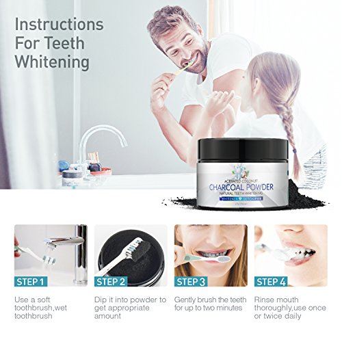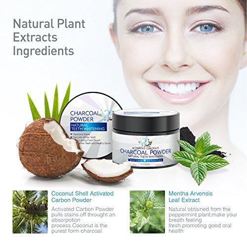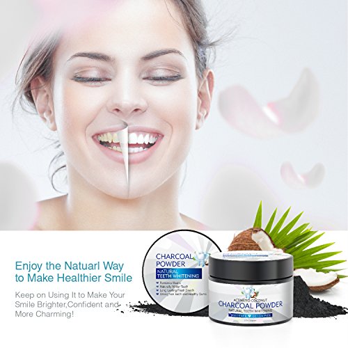 [HOW COCONUT CHARCOAL WORK]:Activated teeth whitener powder is a natural treatment to whiten your teeth.It works by adsorbing small microscopic particles to help remove small spots that cause unwanted discoloration to your teeth.