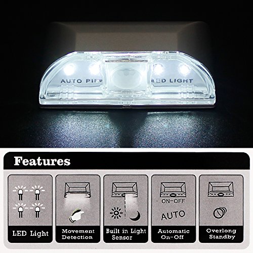 - MOTION SENSOR: Using Advanced PIR sensing technology, automatically identifies human body. Automatically turn on and auto-off after about 5 seconds.