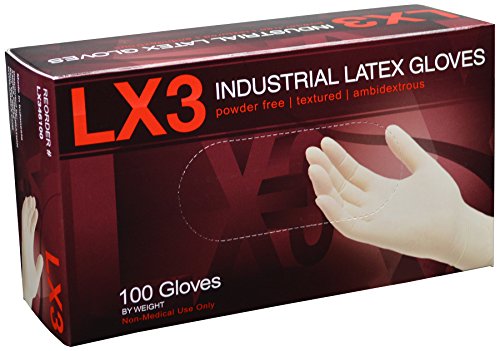 AMMEX - LX346100-BX - Latex Gloves - LX3 - Disposable, Powder Free, Industrial, 3 mil, Large, White (Box of 100)