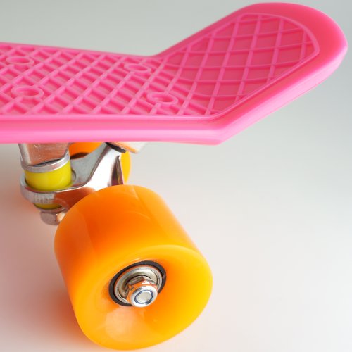 - Feature : Deck: 22''×6'' fresh PP resistant to distortion, retro style / Wheels: 85A 59*45mm soft PU, absorb shock, keep stable smooth running / Trucks: 3" strong aluminum colored trucks / Bearings: ABEC-7 standard, very smooth / Classically styled skateboard, bright and shining colors