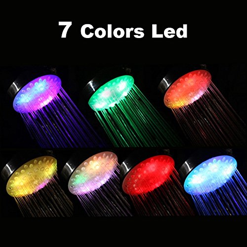 7 COLORFUL LED LIGHT SHOWERHEAD:15 leds changes the different colors of lighting. When turning on the water, Light color will be changed according to the temperature which one color maintain 3 ~ 5 seconds. The lights are even bright enough to shower with the bathroom lights off in the dark. Your bathing room will become a dreaming-world with sparking after a few minutes