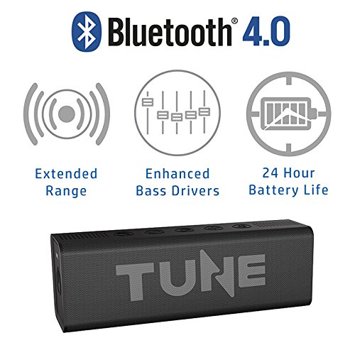Title : TuneTech Portable Bluetooth 4.0 Wireless Speakers - Enhanced Bass Sound Extended Range 24 Hours Playtime NFC Water Dust Shock Resistant Pairs w/ iPhone iPad iPod Android Samsung LG 3.5mm Aux