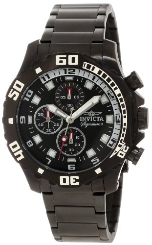 -. Binding : Watch -. Brand : Invicta -. Color : Black Stainless Steel/Black -. Department : UNISEX -. EAN : 0843836073356 -. Feature : Japanese quartz movement / Mineral crystal; black ion-plated stainless steel case and bracelet / Chronograph functions with 60 second, 60 minute and 1/10th of a second subdials with red hands / Black dial with silver tone and white hands and hour markers, black and white Arabic numerals, red second hand; luminous; unidirectional black ion-plated stainless steel bezel with white Arabic numerals; black and white inner bezel / Water resistant to 165 feet (50 M): suitable for swimming and showering -. Label : Invicta -. Manufacturer : Invicta -. Model : 7335 -. MPN : 7335 -. NumberOfItems : 1 -. PackageQuantity : 1 -. PartNumber : 7335 -. ProductGroup : Watch -. ProductTypeName : WATCH -. Publisher : Invicta -. ReleaseDate : 2012-12-13 -. Studio : Invicta -. Title : Invicta Men's 7335 Signature Chronograph Black Dial Black Ion-Plated Stainless Steel Watch -. UPC : 843836073356