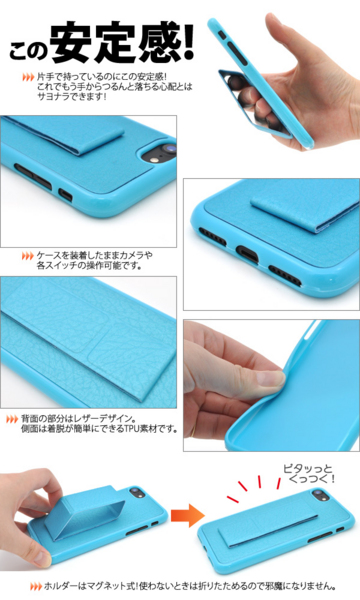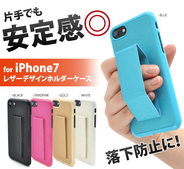 ホルダーの付いたiPhone7用レザーデザインホルダーケース。