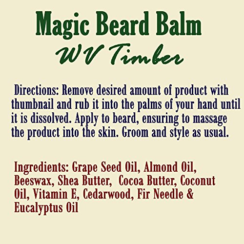 WV Timber Scent: The Cedarwood and Fir Needle combine to give this balm a Woodsy scent that is well balanced with a hint of Eucalyptus. WV Timber is our best selling Beard Oil, and now we're offering it in a balm. Timber fans celebrate! If you're not already a fan, give it a try. We think you will be soon.