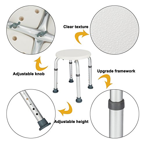 Studio : Mefeir Publisher : Mefeir Binding : Health and Beauty Product Description Introductions: Are you always worried about the elderly slipping when they are taking a shower? If so, this Mefeir Aluminum Alloy Bath Chair Round Stool with Sucker Armrest is a good choice for you. Adopt high quality plastic and aluminum alloy, it features sturdy, durable and safe. It can be used for a long time. And its anti-skidding and adjustable can guarantee the safety of the elderly. Moreover, with design of armrest, it's more convenient for the elderly to use. So what are you waiting for? Don't hesitate, just buy it for your family! ? Features: 1. Made of high quality plastic and aluminum alloy material, study, durable and safe 2. It has a long service life 3. Anti-skidding and adjustable, safe and convenient for use 4. Lightweight and practical design 5. Suitable for the elderly, pregnant woman, etc 6. Easy to install and use 7. Brand new and high quality ? Specifications: 1. Brand: Mefeir 2. Material: Plastic Aluminum Alloy 3. Color: White 4. Dimensions: (12.6 x 12.6 x 20)" / (32 x 32 x 51)cm (L x W x H) 5. Adjustable Height: (14.17~20)" / (36~51)cm 6. Weight: 3.09 lbs / 1.4 kg 7. Weight Capacity: 330 lbs ? Package Includes: 1 x Bath Chair 0