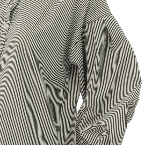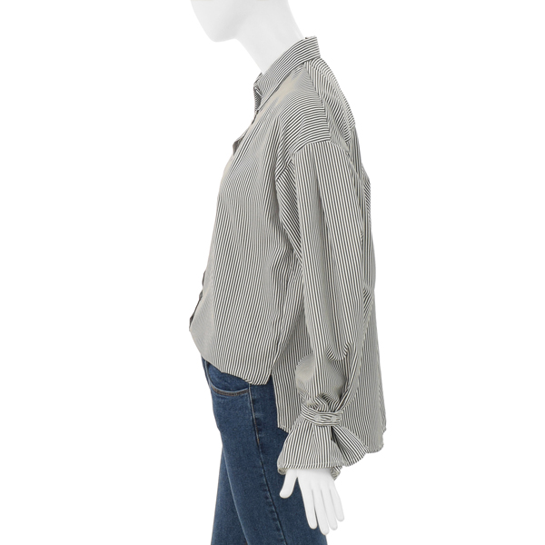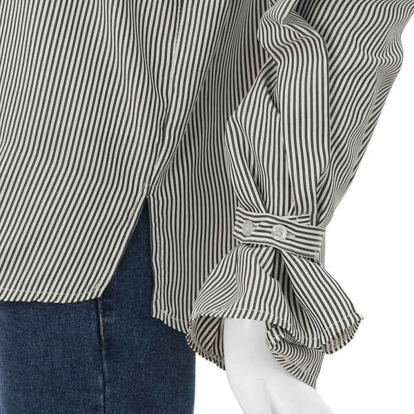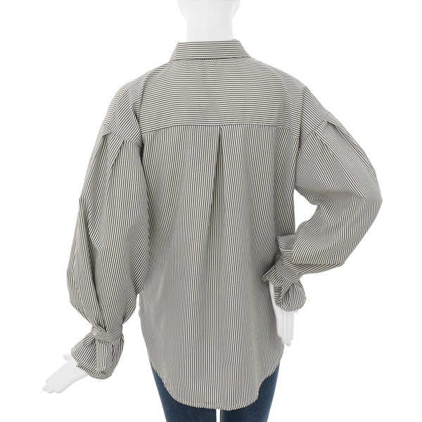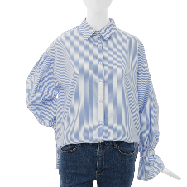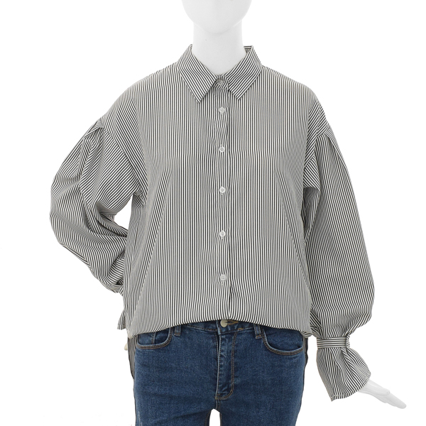 얇은 소재로 간절기시즌과 초여름시즌까지 입으실 수 있는 퍼프소매 스트라이프셔츠입니다.