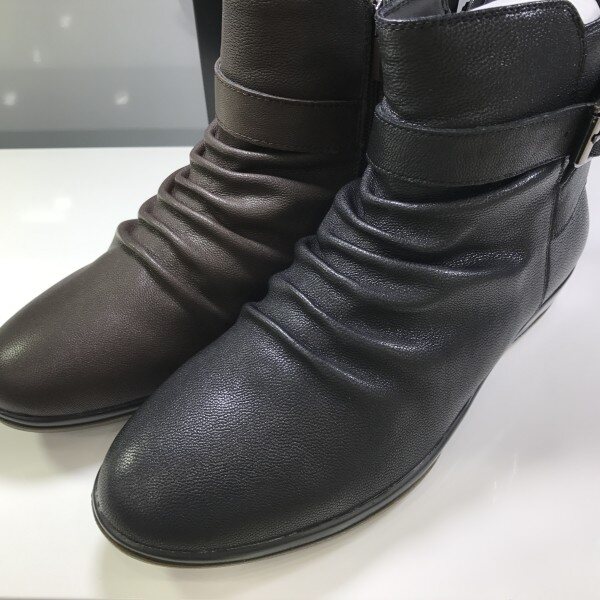 엘칸토 여성 주름장식 앵글부츠입니다깔끔하고 단조로운 주름패턴과 멋스러운 벨트장식이 돋보이는 상품이며 장시간 착화하셔도 발에 무리가가지않습니다