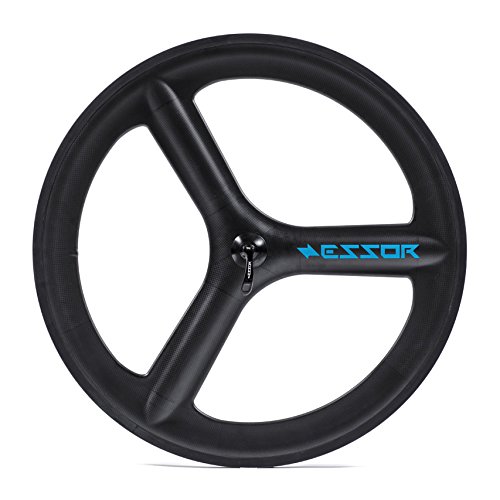 Product DescriptionThe ultra-aerodynamic Essor Tri-Spoke Wheel. Features a 66mm deep rim with a 23mm wide outside diameter. Our valve is located between blades for easy inflation (no valve-extender needed). No rim tape need for extra weight savings. Sealed cartage bearings. Essor USA full 66mm rim without the added mass of a bonded faring. Weight Front Wheel: ~970g Rear Wheel: ~ 1130g Hub spacing: 110 mm0
