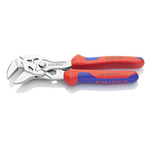 -. Binding : Werkzeug -. Brand : Knipex -. EAN : 4003773069928 -. Feature : Universalschlüssel und Schraubstock im Taschenformat: Der kleine Knipex Zangenschlüssel schraubt, greift, hält, biegt und presst mit 10-facher Kraftverstärkung und ersetzt einen ganzen Satz Schraubenschlüssel / Einfache Bedienung: Schlüsselweiten von 0 bis 27 mm (1 Zoll) können durch die Schnelleinstellung per Druckknopf stufenlos gegriffen werden / Schont empfindliche und veredelte Oberflächen durch gleichmäßige Kraftverteilung an den parallel geführten Greifbacken / Zeitsparendes Arbeiten nach dem Ratschenprinzip: Der Hub zwischen den Greifbacken ermöglicht das Lösen und Festziehen von Schrauben ohne Absetzen / Angenehmes Arbeiten: Komfortable Griffe mit Mehrkomponenten-Hülle gewährleisten optimale Kraftverteilung -. Label : Knipex -. Manufacturer : Knipex -. Model : KPX8605150 -. MPN : KPX8605150 -. NumberOfItems : 1 -. PackageQuantity : 1 -. PartNumber : KPX8605150 -. ProductGroup : Home Improvement -. ProductTypeName : TOOLS -. Publisher : Knipex -. Studio : Knipex -. Title : KNIPEX 86 05 150 Mini-Zangenschlüssel Zange und Schraubenschlüssel in einem Werkzeug verchromt mit Mehrkomponenten-Hüllen 150 mm