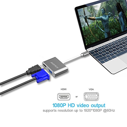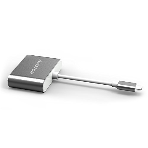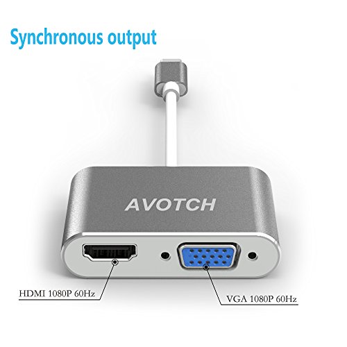 USB Type C to HDMI VGA Adapter,AVOTCH 2 in 1 USB3.1 Type-C Converter Dual screen display with Aluminium Case,l - Grey