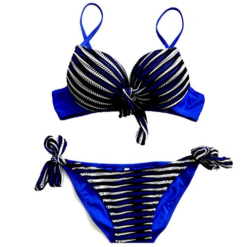 Wicky Women's Push Up Bikini Padded Swimsuit Bikini Set Bathing Suit(Large,Blue)