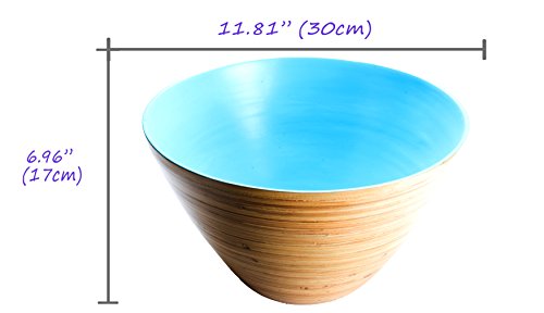 Bamboo Salad Bowl Large 11.7" X 6.63" 100% Bamboo Wood Bowl Eco Frienldy Colors