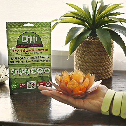 5 Band | QHiti Mosquito Repellent Bracelets - 100% Oil of Lemon Eucalyptus - All Natural and DEET Free - Practical and Easy to Use, Ideal for Outdoor!