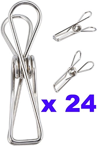 - PERFECT FOR THE KITCHEN The high-quality construction of these stainless steel wire clothespin clamps doesn't just translate into strength. It also translates into durability. These clamps will stand up to the test of time. Use them time after time again, in the toughest home and travel conditions, and they'll continue to work like new. You'll be surprised that you're still using the same clothespin clamps with little to no wear after years of use.