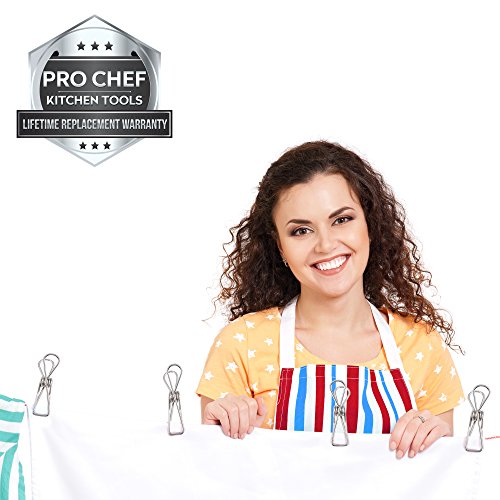 Pro Chef Kitchen Tools Stainless Steel Wire Laundry Clip - Set of 20 with 4 Bonus Clips for Outdoor Indoor Clothesline Drying Clothespins Fasteners for Socks, Scarfs and Delicate Clothes
