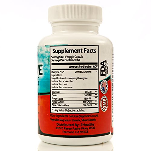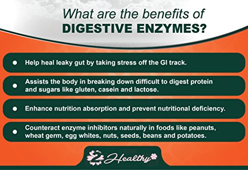 -. Feature : PREMIUM DIGESTIVE ENZYME SUPPLEMENT - Our Digestive Enzymes were carefully formulated to assist the body break down, in the most efficient way, tough proteins, fats and carbohydrates and support the body in breaking down nutrients to make more energy and stimulate weight loss. We use only premium ingredients known to work - the ultimate boost to your body's ability to digest! / STOP GAS, BLOATING & STOMACH DISCOMFORT - These probiotics supplements feature enzyme ingredients such as Bromelain, along with Lactase, Lipase, Protease and Papain help ease the pain and discomfort caused by diarrhea, bloating, gas, IBS, constipation and other GI disorders. / IMPROVE HOW YOU DIGEST NUTRIENTS NOW - This enzymatic formula works is the ultimate aid that boosts the body's ability to digest fats, fiber and protein, as well as cellulose and gluten. This balanced enzyme system can increase digestion efficiency and decreases fatigue to help you feel your best after a good meal! / RECHARGE & ENERGIZE FOR A NEW YOU - When your digestive system works efficiently, you waste less energy processing food. This in turn, means you have more energy to do the things that you really love. These Advanced Digestive Enzymes are ideal pills for individuals who lead active lifestyles or are embarking on a new weight loss fitness journey. / NATURAL SOLUTION, ESSENTIAL FOR EVERYONE - Our All-Natural Enzymes are the complete probiotic solution for both adults and children and will support digestive flora health with foods and liquids that upset the stomach. One capsule is all it takes to feel healthier and happier from the inside out. You will not find any artificial ingredients and we use veggie capsule so there is no gluten in our product!