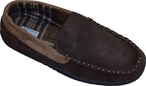 -. Binding : Apparel -. Brand : Perry Ellis -. Color : Brown/Tan -. Department : mens -. EAN : 0700118158470 -. Feature : Exterior is made of micro suede material with interior in flannel plaid material / Fully lined interior and cushioned footbed bottom / Slip-on indoor moccasin design. Surface clean with soft cloth / Each pair is packed in a nice gift box. This is the perfect gift for him. / Rubber non-skid sole. Available in Medium, Large, X-Large and XX-Large sizes. -. ProductGroup : Shoes -. ProductTypeName : SHOES -. Size : XXL 13 -. Title : Perry Ellis Mens Moc With Contrast Moccasins Slippers (XXL 13, Brown/Tan) -. UPC : 700118158470