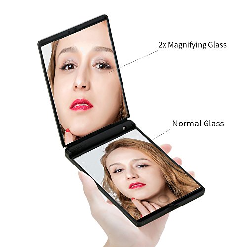 2X Magnification - One side has polished normal glass for true image and the other one with 2X magnifying mirror used for delicate makeup,