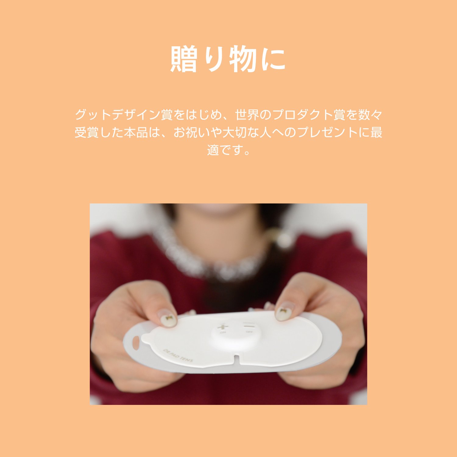 After attaching the included battery and gel pad to the main body, it is a simple operation of simply turning on the power and sticking it to a part with pain or pain.