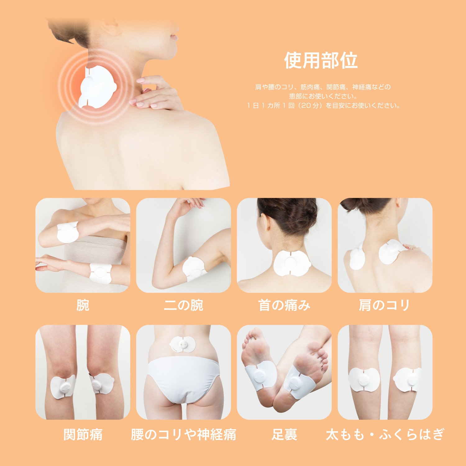 Can be used for arms, neck pain, shoulder stiffness, joint pain, lower back stiffness and neuralgia, soles of the feet, thighs and calves.