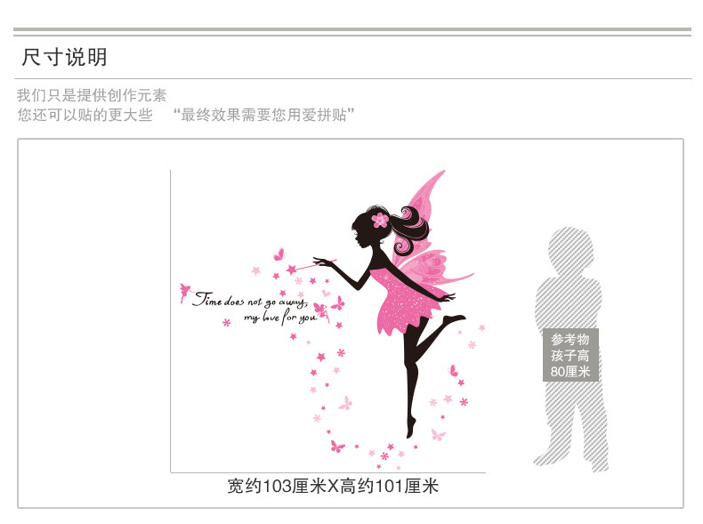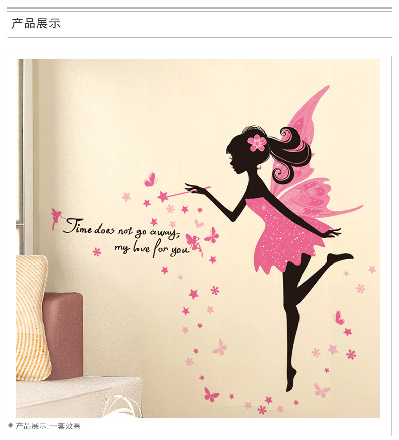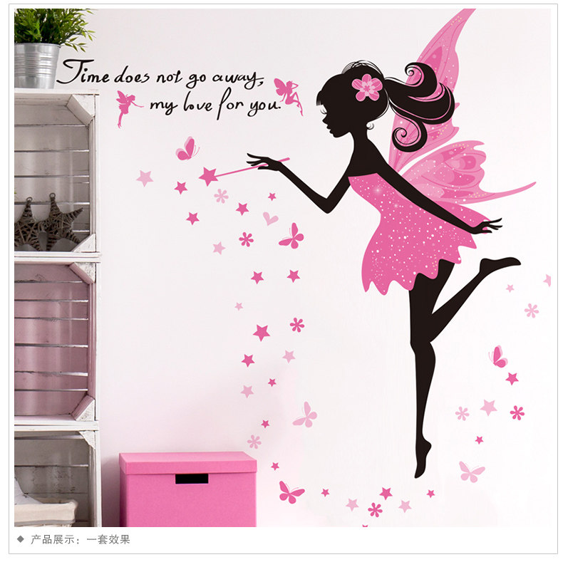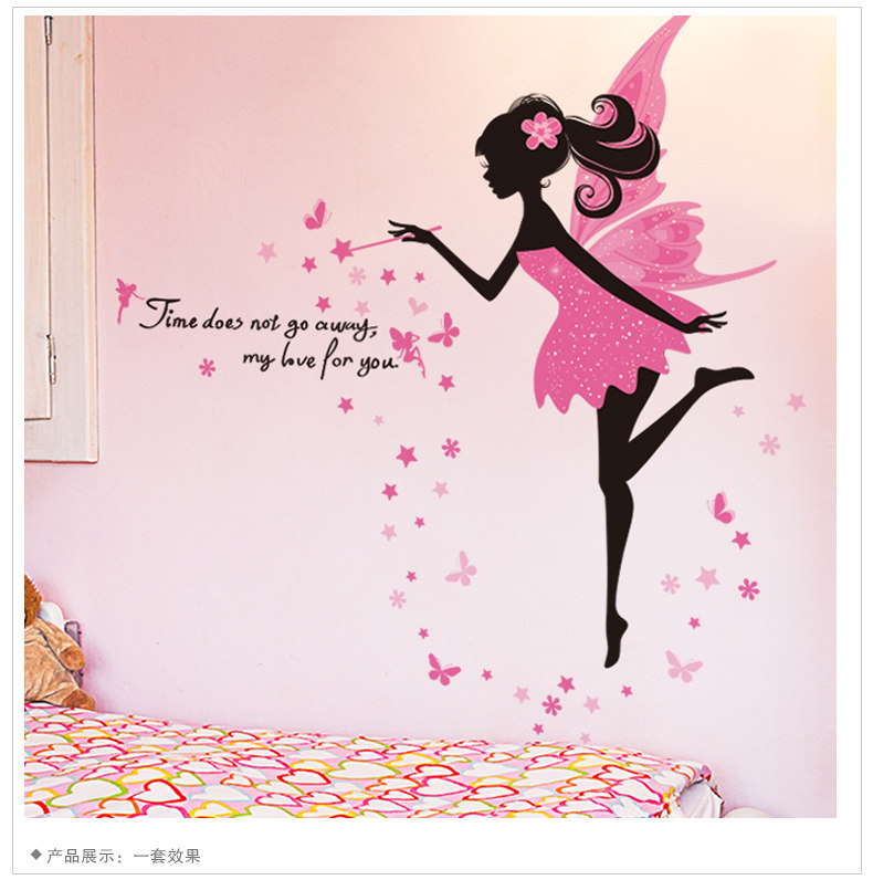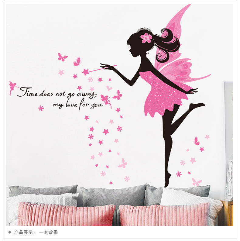 女孩卧室温馨床头自粘墙贴纸粉色仙子墙面装饰品墙纸壁纸自粘浪漫