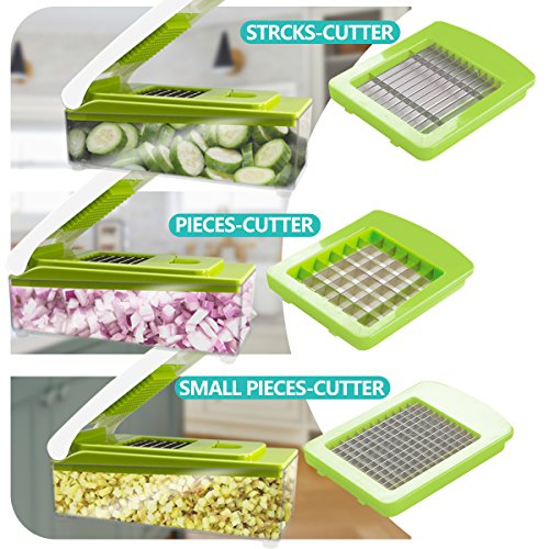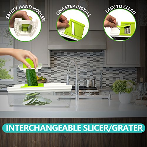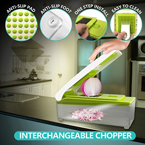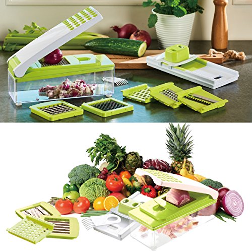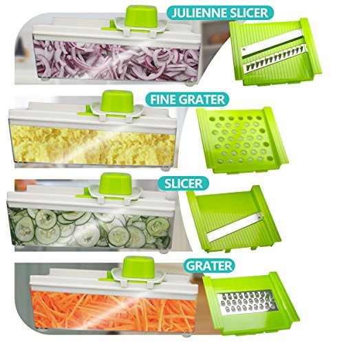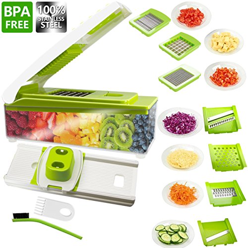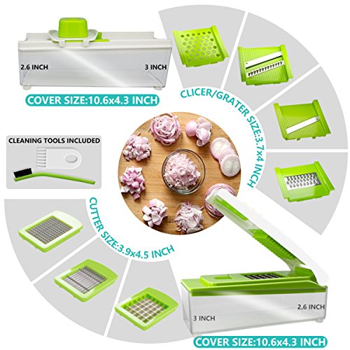 Description: ANKO vegetable and fruit cutter is the most helpful assistant in the kitchen. Because you can have more time to do the things you want to do as it reduces a lot of time on cooking. Diversified combination of blades can fit your most require, no tears again when you cutting the onion, it makes you easier and convenient to deal with breakfast, lunch and supper to satisfy your family. The product is made of superior ABC plastic, the blade is made of superior stainless steel. It not only durable but also easy to clean. You can clean the remaining food in the cracks with attached little brush. and the safety design will protect your fingers from the cutter. Specification: Material: ABS plastic Product Dimensions: 11 x 5.5 x 4.75 inches Weight: 2.5 Lb Package Includes: 1 x Big dicing blade 1 x Small dicing blade 1 x Straight dicing blade 1 x Slicing blade 1 x Grater 1 x Spike rater 1 x Hand protector 1 x Food container 1 x Cleaning brush 0 |