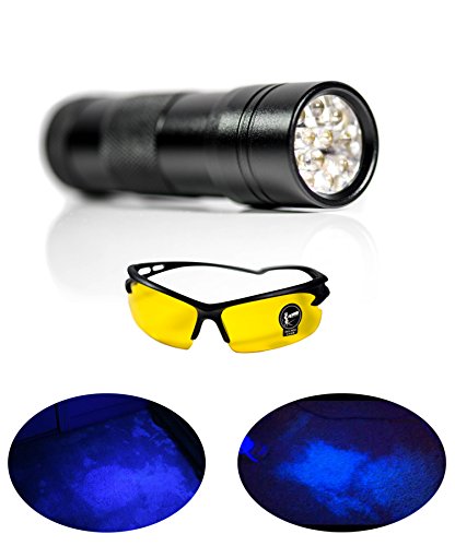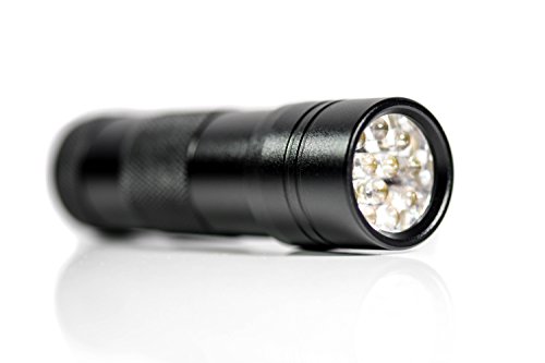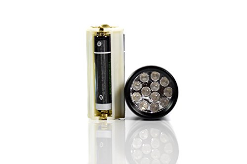 ✔ - PREMIUM QUALITY – Our UV flashlight is made from high quality rugged air-craft grade aluminium and hard anodizing finish. Be assured that you are investing in something that will last longer than most UV flashlight. The UV flashlight emits 390nm wavelength with 12 top quality ultraviolet led lights, each LED lasts up to 12 years. Comes with 3x AAA batteries