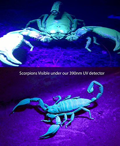 ✔ - DETECT WHAT THE EYES CAN’T SEE – This supreme UV flashlight means you can detect the pesky stains that the naked eye can’t see, which makes it perfect for detecting unwanted stains like pet urine, dry stains on surfaces and easily spot scorpions (That's right, scorpion spotting! Scorpions glow a vibrant blue-green under a UV light, lighting up like beacons against the darkness. Great for camping) also be able to authenticate currency, official identification cards, passports.