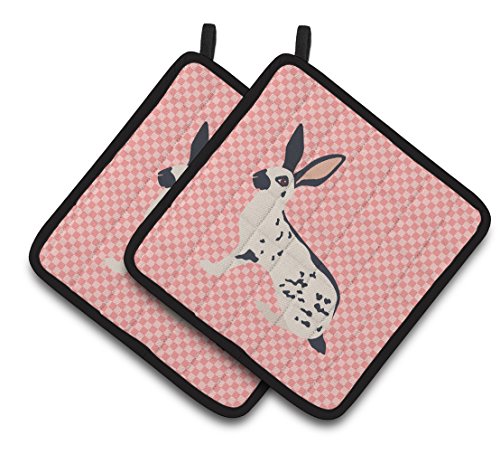 Caroline's Treasures BB7961PTHD English Spot Rabbit Pink Check Decorated Pot Holder, 7.5" x 7.5", Multicolor
