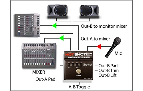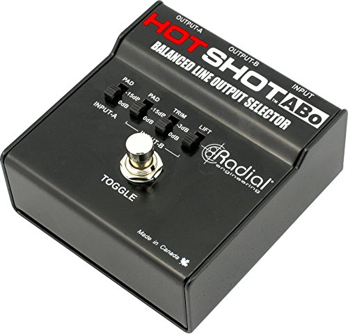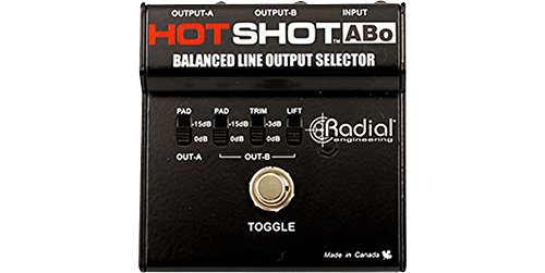 Switch between a pair of input sources quietly and intuitively. "The Radial Engineering HotShot ABo balanced line output selector does the work of setting the path you want for your sound between 2 destinations. The completely passive HotShot ABo does not require powering of any type to work its latching switch. The multi-purpose HotShot ABo simplifies on-off and diversion control over audio signals. Radial outfits the selector with useful features such as grounding options and level adjustments to conform to a wide variety of applications. Critical to its performance is the HotShot ABo's rugged 14-gauge steel construction and ultra compact footprint. Use your HotShot ABo in the most demanding professional applications while enjoying years of trouble-free performance. The Radial HotShot ABo can be used in a variety of applications including driving 2 channels on a mixing console for dry and wet effects routing; to divert a mic from the PA system to the monitors or intercom; for temporarily muting the audio signal such as when coughing; and for talkback mic control. Ultra compact and extremely rugged, the Radial Engineering HotShot ABo is made tough for years of trouble free performance and is backed with a 3-year transferable warranty."Feature