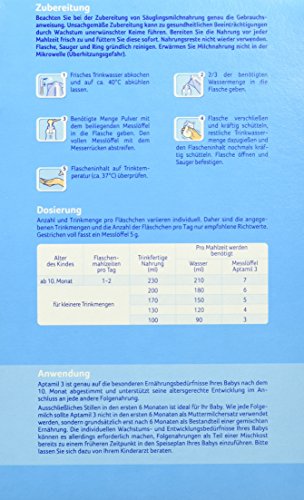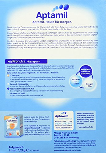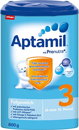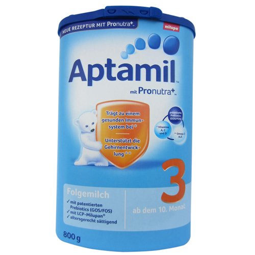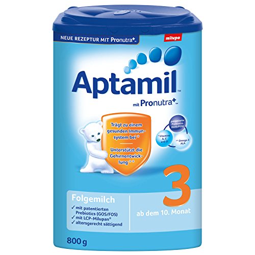 Aptamil 3 eignet sich besonders im Anschluss an das Stillen, an Aptamil 2 oder einer anderen Flaschennahrung. Zudem ist es reich an lebenswichtigen Mineralen und Vitaminen, altersgerecht sättigend und leicht verträglich- schon für die ganz Kleinen.Feature