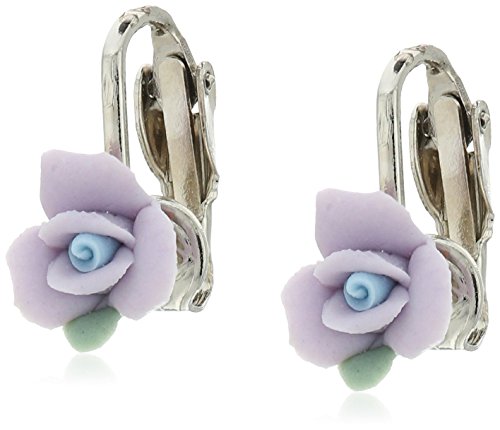 Lavender rosebud clip-on earrings made of handcrafted genuine porcelain