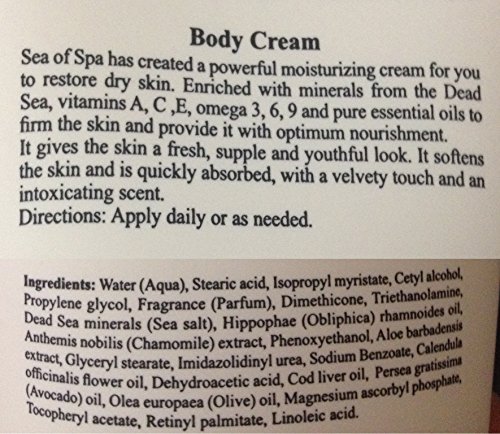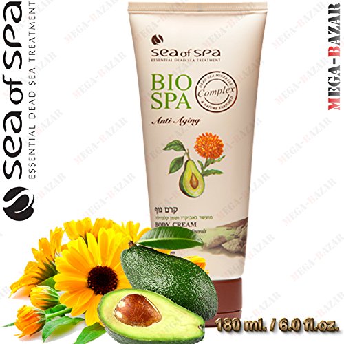 The high content of Dead Sea salts, minerals and vitamins sooth your feet, while the rich oils nourish and moisturize your skin. Anti Aging Bio Spa (by Sea of Spa) body cream, contains Dead Sea Minerals, Avocado and Calendula oil . For all skin types. Contains 180ml, 6.0 Fl o.z