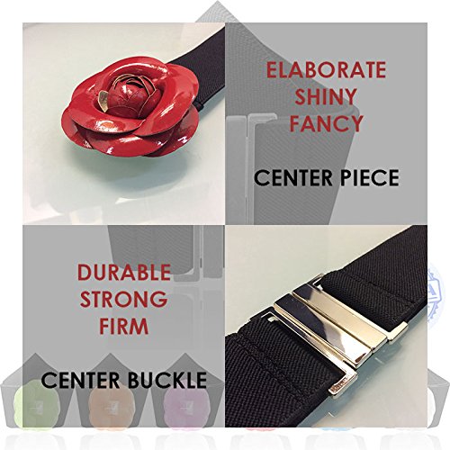 -. Title : LUNA Fashion 1 1/2 Inch Elastic Cinch Belt - Waist Trimmer Stretch Buckle Belt (Various Colors / One Size)