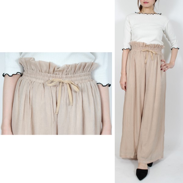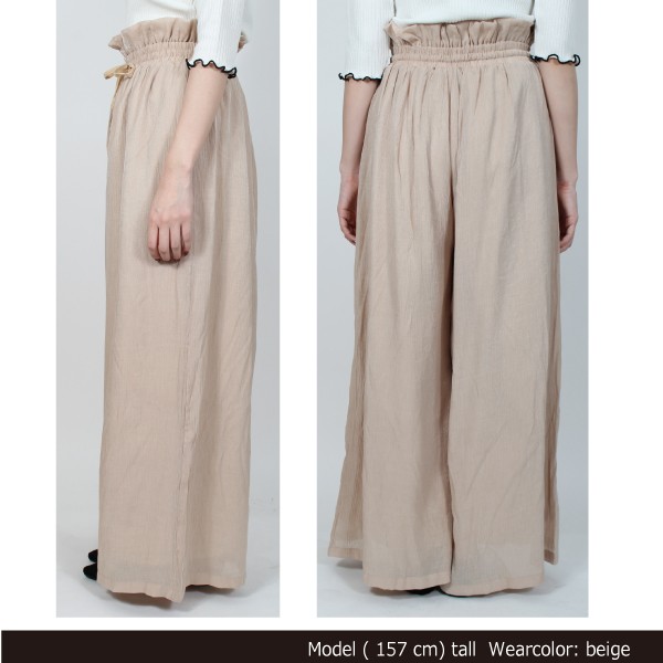 | 実寸 | ボトム丈:96cm、ウエスト:66cm(ゴム)、ヒップ:128cm、前ワタリ:38cm、後ワタリ:42cm、前股上:35cm、後股上:36cm、裾周り:80cm、股ぐり:77.5cm |