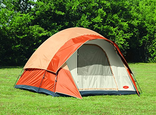 Studio : Texsport Publisher : Texsport Binding : Sports Product Description Sleeps up to 6 persons. Dimensions are 12 feet by 10 feet by 76 inches high. Heavy-duty 600mm taffeta walls and rainfly are polyurethane coated with a 3/4 length rainfly with front awning with taped seams for added protection. Rip-stop polyethylene floor with pin and ring frame system with three 11mm shock-corded poles. Durable speed clips and sleeves secure tent to frame. No-see-um mesh D style front door with zippered storm flap and No-see-um mesh sides panels provide superior ventilation. Complete with stakes, carry-storage bag. Flame retardant, meets C.P.A.I.-84 specifications. Mecca Orange-Gray or Sand-Tan colors available. 0