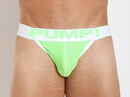 Binding : Apparel Product Description You're just asking for trouble when you sport our PUMP! Neon Fuel Green Jock. But since you're a bad boy, you'll love how your backside is left uncovered while your front is only concealed by a skimpy piece of vibrant neon green micromesh. 0