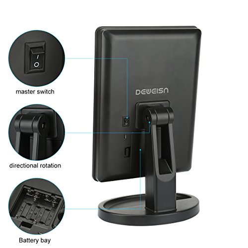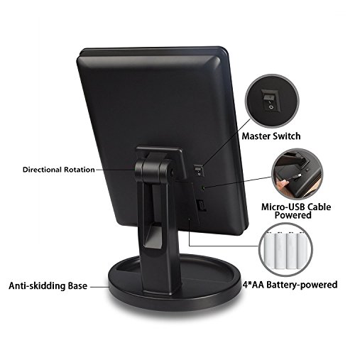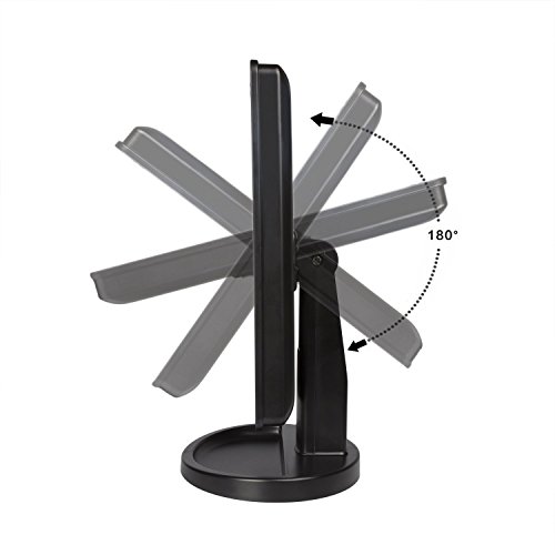 - Desktop Makeup Mirror - 180 degree rotation to flexible adjust suitable position for makeup.The Base Recess can hold jewelry or cosmetics like watch, earrings, bracelets, etc. Perfect mirror size H10.7 * W6.5 inches is large enough to view your entire face.