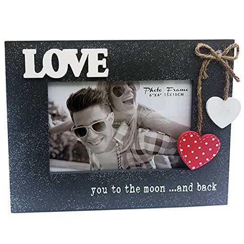 4x6” Wooden Photo Frame with words “LOVE you to the moon and back" Contemporary Distressed Style, Gray Stone Texture. Perfect for Mother's Day, Birthdays, Anniversaries or to say I Love You!
