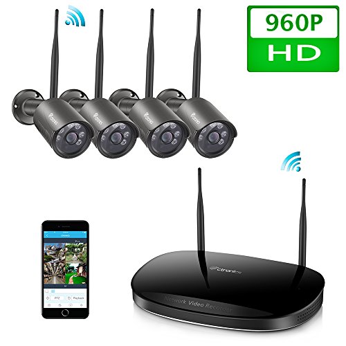 ( WIDER VIEW )Ctronics 2.4G HD Wireless NVR System WIFI Security Cameras System with 4X960P Wireless Indoor&Outdoor Waterproof Night Vision Cameras