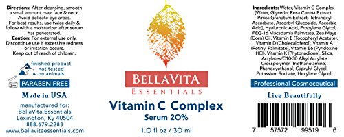 - Feature : VITAMIN C COMPLEX SERUM 20% / HYALURONIC ACID to Promote Skin Regeneration / SUPER ANTIOXIDANT POWER & CONCENTRATED VITAMIN C from Rose Hip & Pomegranate Extracts / OPTIMIZED forms of vitamins A, B6, C, D, E & K for Maximum Absorption / REDUCES the Appearance of Fine Lines, Wrinkles, Dark Circles and Sun / Age Spots