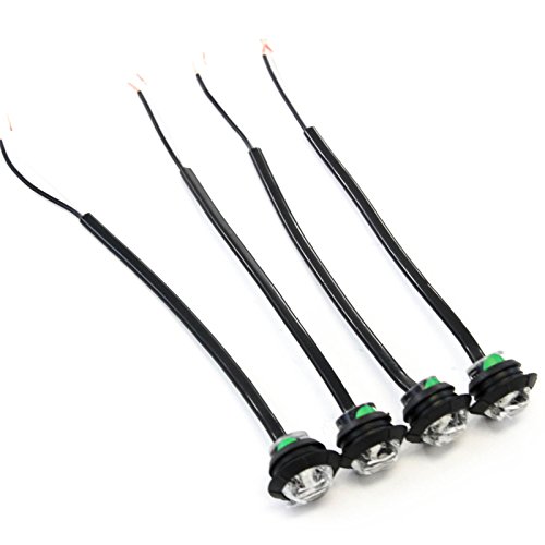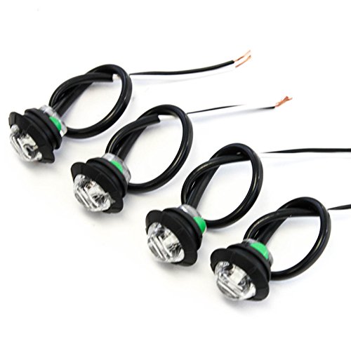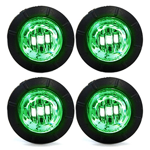 Sale includes 4 Clear (illuminates green) LED 3/4" Round Side Marker Lights; Polycarbonate housing with rubber grommet