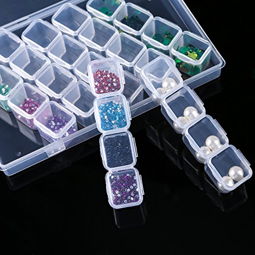 - Designed with 28 mini compartments: Each clear plastic storage box has 28 mini compartments, and 56 mini compartments for 2 clear plastic storage boxes, great for storing various diamonds of diamond painting, nail art embellishments, makeup and various small items.