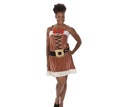 -. Feature : Adult Reindeer Party Dress Costume / 29" x 28 1/2" with a 38" belt. / Polyester / Recommended for children 14+