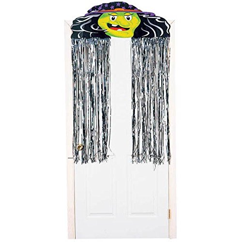 Amscan Decorative Family Friendly Witch Door Curtain Halloween Party Decoration, Silver, 54" x 36"