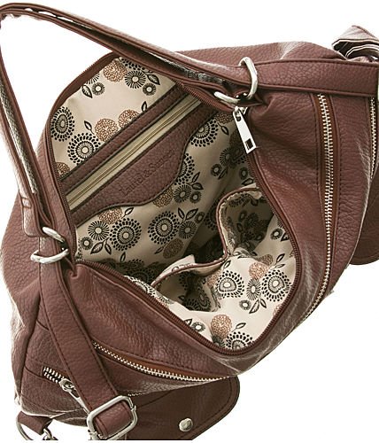 [Description] Top zipper closure - Measures approx. 12```` Height_ 12.5```` Length_ 4```` Width Faux leather - Silver tone metal 7 exterior pockets - Lining: cotton/nylon blend 3 pockets inside - One of the pockets is sized to hold a cell phone Strap: adjustable 11```` drop
